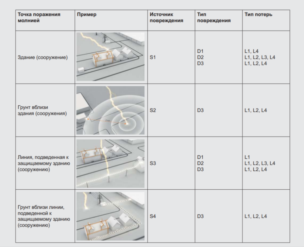 Угрозу удара молнии вычисляют на основе анализа риска в соответствии с ГОСТ Р МЭК 62305-2-2010. Местный риск определяется из соотношения между частотой ударов молнии, умноженной на вероятность ущерба, и коэффициентом утраты или размера ущерба. В зависимости от угрозы удара и прогнозируемых повреждений рассчитывается класс молниезащиты для здания.